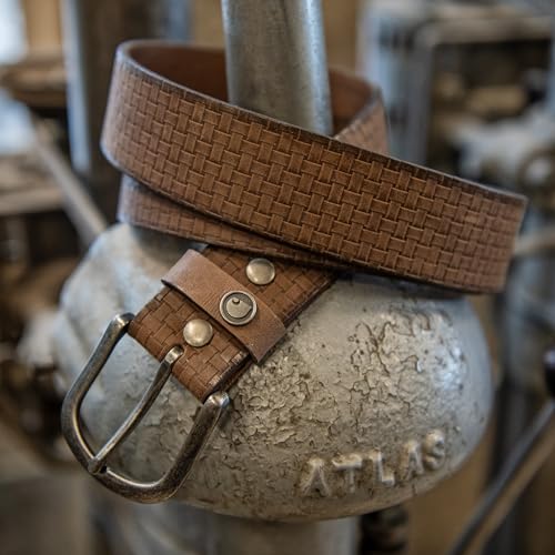 - Carhartt Men's Saddle Leather Basketweave Belt. Up and down ladders, in and out of the truck, keep your pants right where you like them throughout your busy work day with this full-grain leather belt