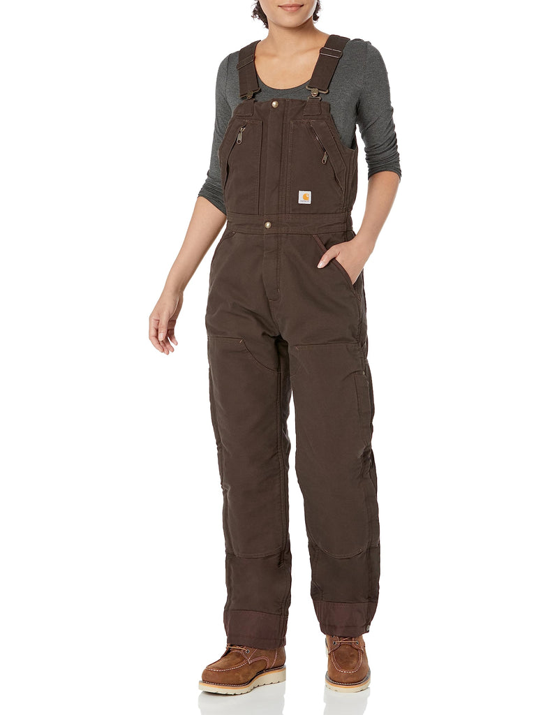 Details: Description When it's cold outside, little compares to the utility of these women's Carhartt insulated biberalls. Arctic weight insulation, washed duck canvas, and reinforced kick panels combine to keep you comfortable on and off the job. Ankle to thigh leg zips make for easy on and off over boots. A loose fit is our roomiest cut.