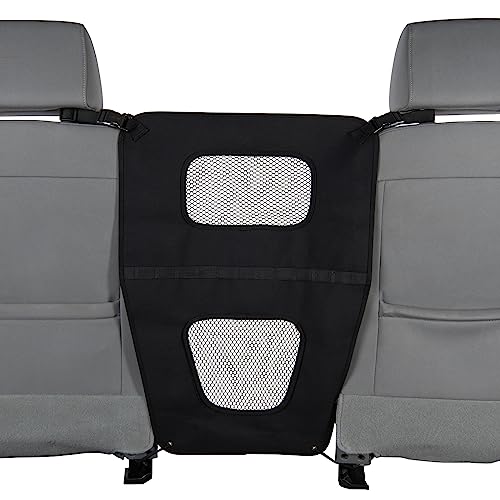 Details: Keeps pet from jumping in front seats. Barriers allow for air and seeing pets. Bottom panel opens for access to control panels. Buckles around headrests and secures to seat bottoms. Durable 500D nylon duck weave with Rain Defender