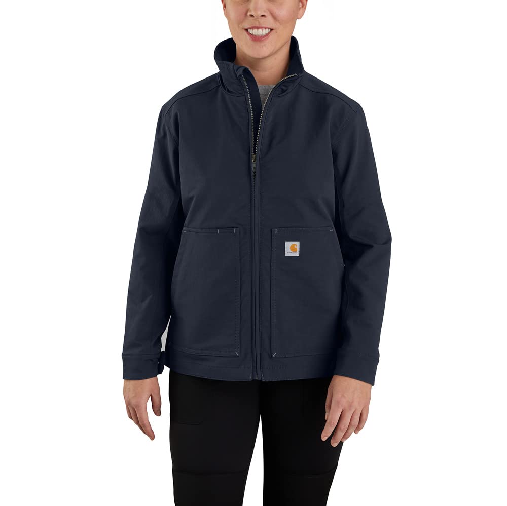 Details: Description Changing weather conditions call for versatile gear. This women's Carhartt jacket ensures you stay comfortable as you work with a stretch nylon-build that's wind and water resistant. Internal and external pockets provide plenty of space for work essentials.