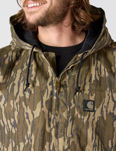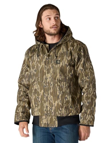 Details: Description Stay warm in the woods in this men's Carhartt active jac for hunters. Made from rugged duck with built-in flex, quilted insulation, and water-repellent technology that keeps you dry in light rain. Featuring durable Cordura®-reinforced cuffs and a Mossy Oa