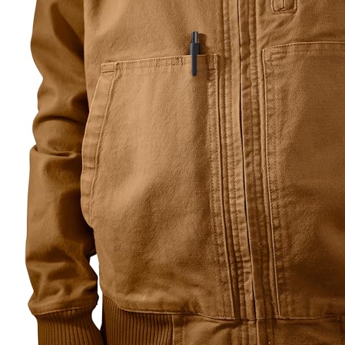 Details: Description This men's bomber jacket combines Carhartt toughness with extra flex for easy movement. Built from strong, wind-resistant firm-hand duck with and a stretch twill lining. Featuring multiple pockets, including an interior zipper pocket.