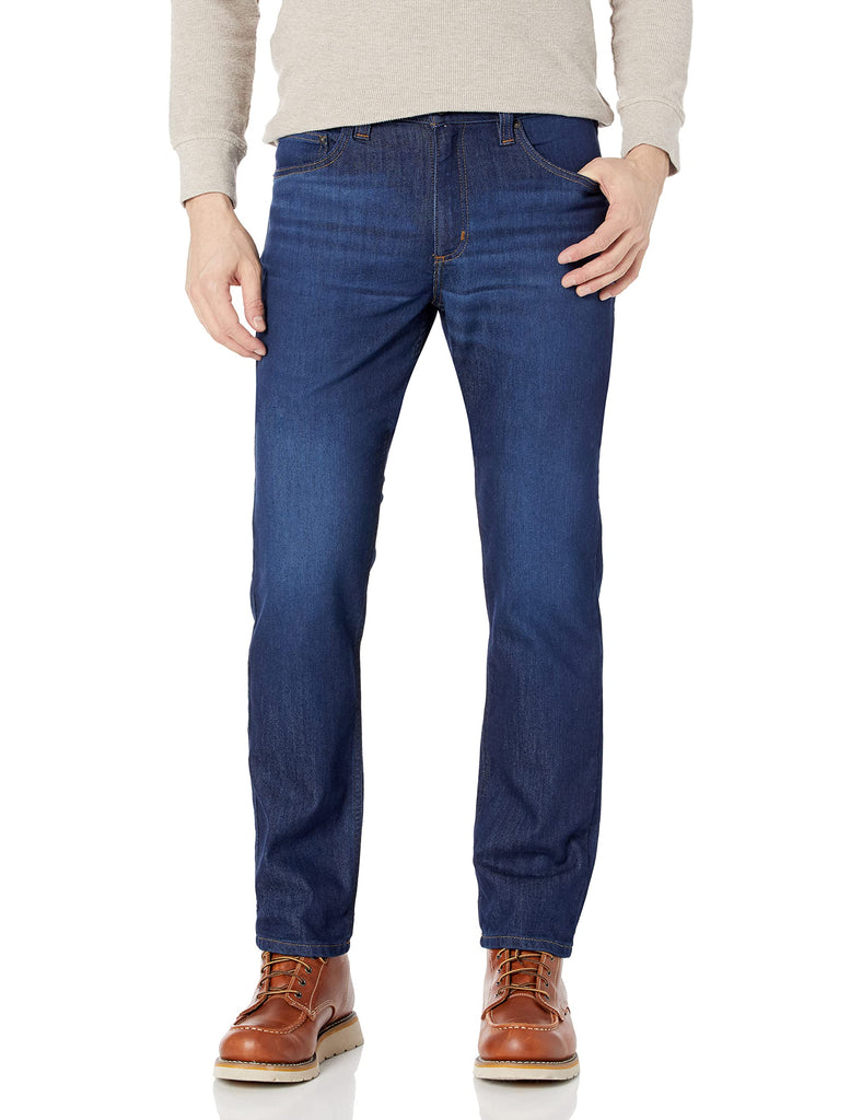 Details: Description These men's low-rise work jeans wick away sweat so you stay dry on the job. They're made of heavyweight denim that's equal parts durable and flexible with a straight fit that's closer to the body through the seat and thigh. Cut with a tapered leg opening that fits over boots. 12.65-ounce, 75% cotton / 23% polyester / 2% elastane denim. FastDry® technology keeps you cool for all day comfort. Built to move with Rugged Flex® stretch technology. Straight fit: Closer to the body fit through the seat and thigh with room to move and a tapered leg opening. Strong sewn-on-seam belt loops. Hidden back drop-in cell phone pocket. Imported