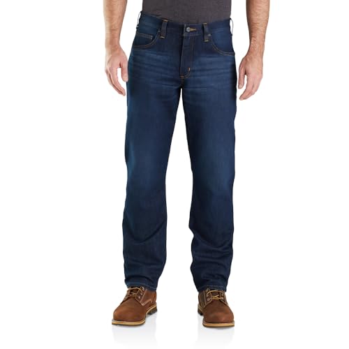 Details: Description These men's low-rise work jeans wick away sweat so you stay dry on the job. They're made of heavyweight denim that's equal parts durable and flexible with a relaxed fit that's easy to move in. Cut with a straight leg opening that fits over boots. 12.65-ounce, 75% cotton / 23% polyester / 2% elastane denim. FastDry® technology keeps you cool for all day comfort. Built to move with Rugged Flex® stretch technology. Relaxed fit: Comfortable fit through the seat and thigh with more room to move and a straight leg opening. Strong sewn-on-seam belt loops. Hidden back drop in cell phone pocket. Imported