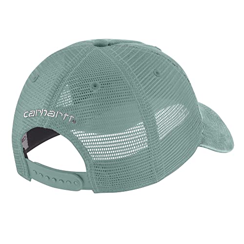 Details: Made from 100 percent cotton, this cap has a 100 percent polyester-mesh back for breathability. Light with a medium profile, its sweatband wicks sweat for comfort with fast dry technology. Adjustable fit with a Carhartt label sewn on front.