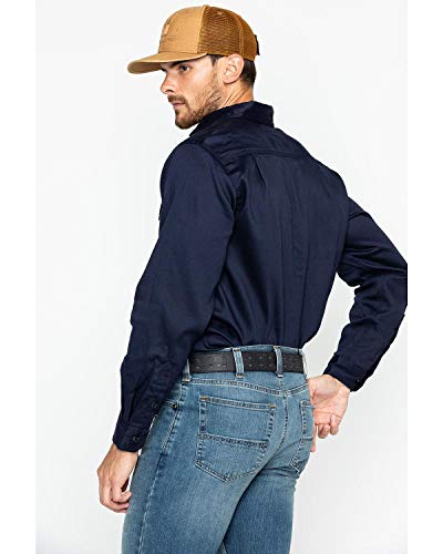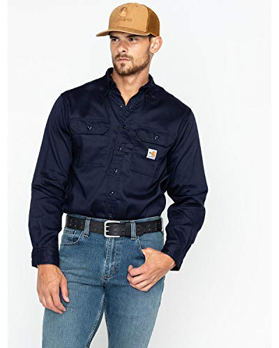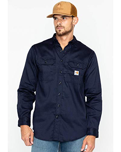 Details: Carhartt's flame-resistant work-dry lightweight twill shirt is a comfortable choice on warmer days. Offering an original fit and made of 6-ounce, FR twill- 88 percent cotton/12 percent high-tenacity nylon, this shirt provides a button-down collar with button closure, FR melamine buttons throughout, two chest pockets with flaps and button closures, extended sleeve plackets with two-button adjustable cuffs, has the Carhartt FR and NFPA 2112/HRC 2 labels sewn on left pocket and it meets the performance requirements of NFPA 70E standards and is UL classified to NFPA 2112.NOTE: If your chest and/or waist measurement falls between sizes, buy the larger sizes.