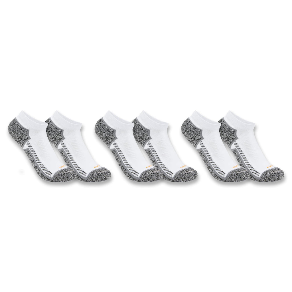 Details: Description Outwork them all in Carhartt's legendary socks built to last as long as your favorite work wear. The Men's FORCE Performance Work Low Cut Sock is designed to thrive in rugged work conditions. Powerful Fast Dry Technology quickly moves sweat so feet stay dry and comfortable. Mesh ventilation channels cool feet for breathability. Built-in arch support prevents the sock from bunching and the reinforced heel and toe offers extra durability. Carhartt's iconic work wear gives tough days a kick in the pants. Fits men's shoe size 6-12. 3 pairs per package.