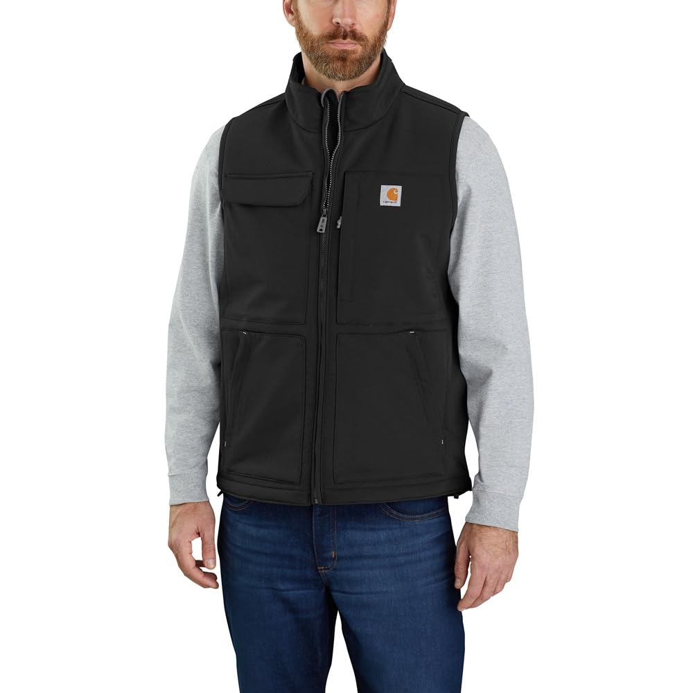 Details: Description Whether you work outside or explore the great outdoors, this men's Carhartt vest keeps you covered in rugged conditions. Super Dux™ nylon is lighter and stronger Carhartt's traditional 12-ounce duck. Water repellent, wind resistant, and lined with sherpa fleece for dependable warmth. A relaxed fit lets you move easily through the toughest jobs. 7.75-ounce, 100% Super Dux nylon. Sherpa fleece lining for warmth. Rain Defender® durable water repellent (DWR) keeps you dry and moving in light rain. Wind Fighter® technology tames the wind. Carhartt strong triple-stitched main seams. Relaxed fit. Full front zip with kissing welt construction for weather protection. Hook-and-loop right-chest pocket with pen stalls; Zipper left chest pocket. Two side-entry zipper pockets. Two inner hook-and-look pockets. Drawcord-adjustable droptail hem for added coverage. Imported
