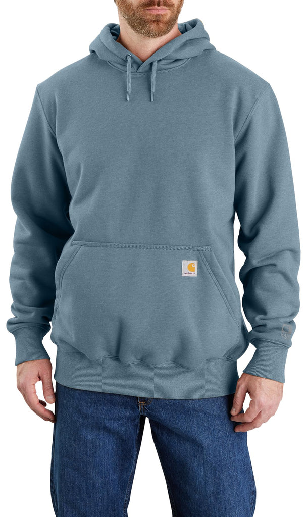 Details: Description This men's hoodie offers the warmth and comfort of a heavyweight sweatshirt with the added weather protection of Carhartt's Rain Defender® water-repellency to keep you dry in damp weather. It features a thick cotton blend, and a loose fit allows for easy layering and movement.