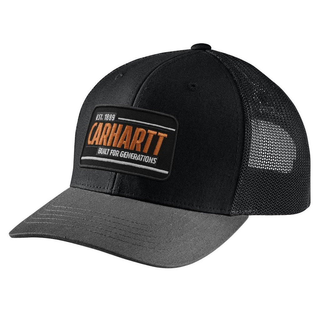 Details: Description Built to last, this men's Carhartt hat balances durability and comfort with a washed canvas front panel and breathable mesh back. A built-in sweatband fights sweat and resists odors, and an embroidered "Built for Generations" logo accents the medium-profile design.