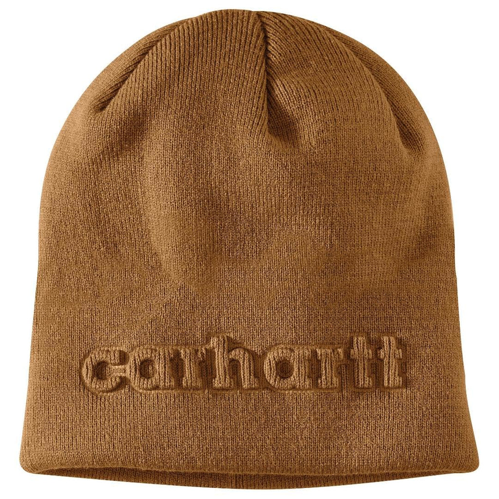 Details: Description Classic Carhartt. This men's knit beanie gets the job done with durable warmth for cold days. The acrylic rib-knit is soft and stretches to fit your head.