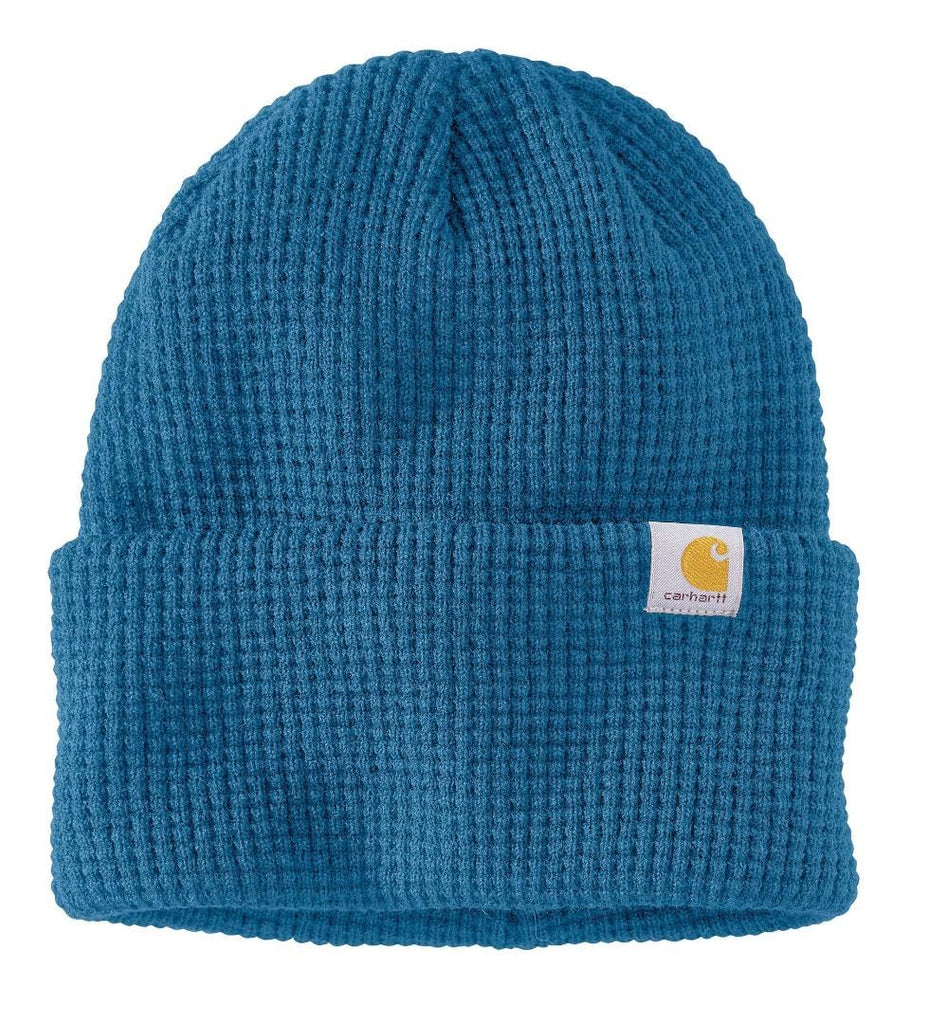 Details: Description The Carhartt knit waffle beanie balances warmth and breathability for comfort through stop-and-go work and weekend activities. The acrylic knit has a soft feel and plenty of stretch for all-day comfort.