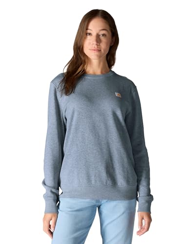 Details: Description A work day staple, this women's Carhartt sweatshirt is equally comfortable on the weekend. The midweight cotton blend is extra soft against the skin. A relaxed fit means gives you a little extra room to move.