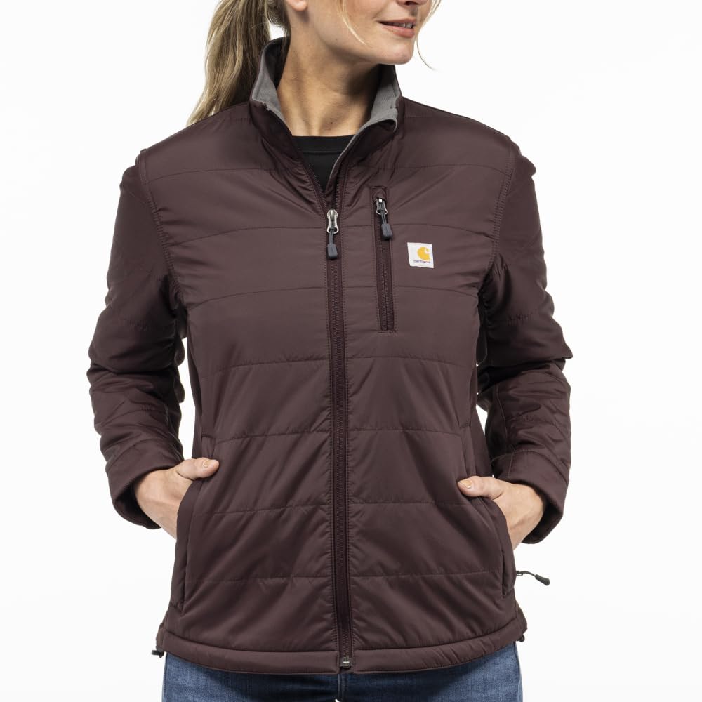 Details: Description Stay equipped for cool, wet weather. This women's lightweight Carhartt jacket is water-repellent, windproof, and insulated for extra warmth. Made to move, with a relaxed fit and built-in flex where you need it most. Featuring Cordura® for added durability and multiple pockets for essentials.