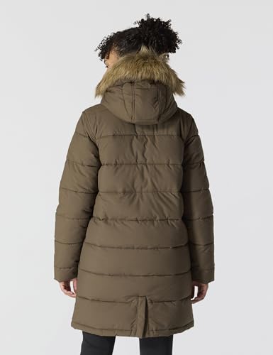 Details: Description Grab this women's Carhartt utility coat when the weather is cool and damp. Its nylon shell blocks wind and sheds light rain to keep you warm and dry. Synthetic insulation plus a sherpa fleece lining in the upper body seal in heat. Knit cuffs and an adjustable hood further seal out the cold as you reach and flex. Pockets inside and out offer plenty of storage. A relaxed fit means a little extra room to move.