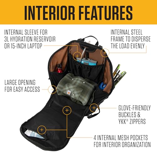 - BUILT FOR ANY ADVENTURE| Whether you're on a short, technical outing or a long, rugged hike, this Carhartt 45L internal frame backpack is up to the challenge.