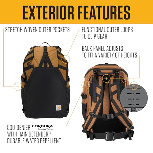 Details: Description The Carhartt 45L Nylon Internal Frame Hiking Backpack is built to handle everything from short technical outings to long, rugged backpacking adventures. Crafted with durable Cordura® double ripstop fabric, this water-repellent backpack is designed to withstand tough conditions while keeping your gear dry and secure. Whether you're hiking, camping, or using it as a travel backpack, its internal wire frame and compression straps ensure weight is evenly distributed for maximum comfort. The versatile design features an internal sleeve that holds a 3L hydration reservoir or a 15" laptop, along with a convenient hanging loop and hydration port for easy access. The adjustable back panel fits a wide range of heights, making it perfect for both men and women. Ideal for outdoor enthusiasts, this reliable and rugged camping backpack for men is ready to take on any adventure—be it hiking, backpacking, or exploring the urban jungle. Make the Carhartt 45L your go-to pack for any journey.