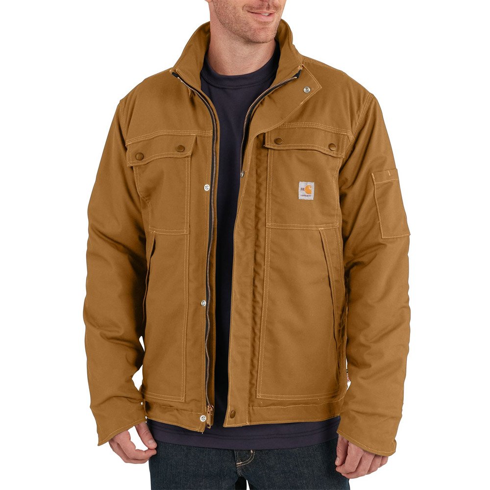Details: Description Carhartt designed this men's coat with all of the safety and technical features the toughest jobs require. Flame-resistant duck repels water, while stretch panels give you full freedom of movement. Warm insulation keeps you comfortable in frigid weather.