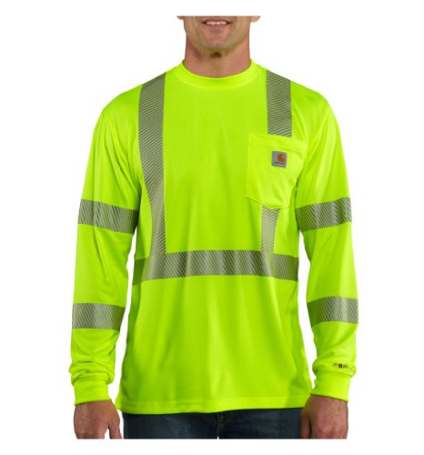 Details: Rugged gear that's earned its stripes, the Carhartt Force High-Visibility Long-Sleeve Class 3 T-Shirt is constructed of 4.25-ounce bird's-eye knit, 100% polyester Force fabric. This hard-working, sweat-wicking and stain-fighting fabric stares down heat and grime; sweat's about to lose its wet. The t-shirt's also built with 3M Scotch lite Reflective Material-5510 Segmented Home Wash Trim, which is segmented for superior breathability and durability plus an enhanced range of motion. In addition, it maintains its performance through 75 home launderings. There's also a rib-knit crewneck collar and cuffs plus a handy left-chest for tools, pens, glasses and more. The tag less neck label eliminates chafing and side-seamed construction minimizes twisting. 4.25-ounce, 100% polyester bird's-eye knit Force fabric wicks away sweat and releases stains ANSI Class 3, Level 3 compliant 3M Scotch lite Reflective Material-5510 Segmented Home Wash Trim Relaxed fit Meets ANSI/ISEA 107-2010