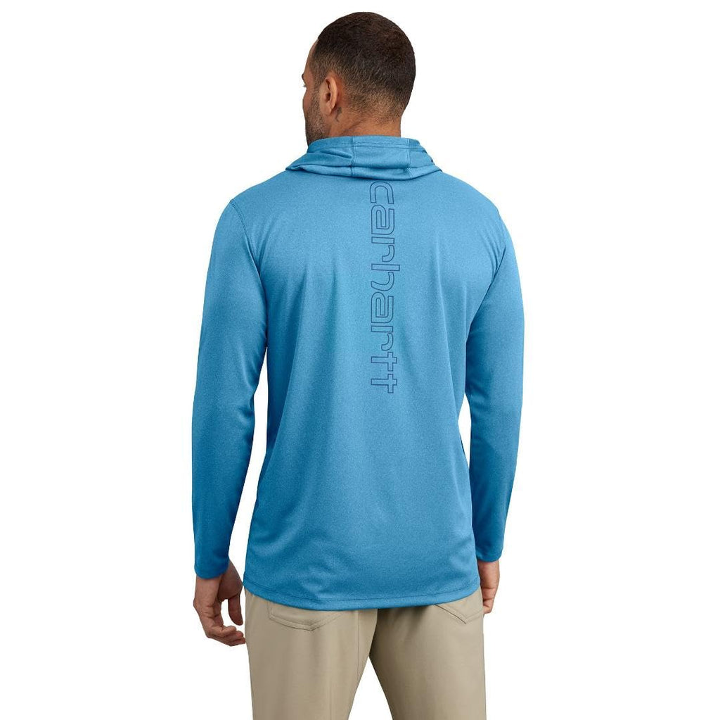 Details: Description Pull on this men's Carhartt long-sleeve t-shirt when you're working full days under the hot sun. A lightweight hood extends coverage, while UPF-rated jersey blocks sun, fights sweat, and dries quickly to keep you cool, dry, and focused while you work.