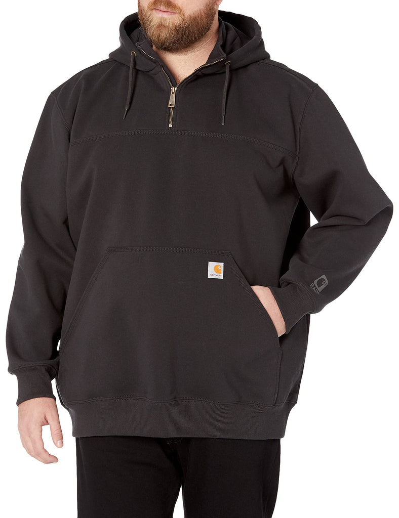 Details: Description This men's hoodie offers the warmth of a heavyweight sweatshirt with the protection of Carhartt's Rain Defender® water-repellency tech to keep you dry in damp weather. It features a thick cotton blend with a quarter zip for adjustability and a loose fit for easy layering.