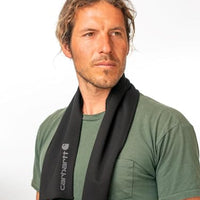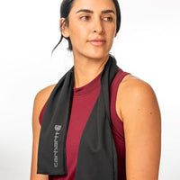 Details: Description Versatile, compact, quick-drying cooling towel. - 155GSM, 45% recycled polyester/45% honeycomb polyester - FastDry® technology wicks sweat and keeps you cool - UPF 50+ protection blocks 98% of harmful UV rays - Cooling fabric activated upon contact with cold water - Anti-odor fabric - Dimensions: 10" W x 36" L -