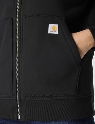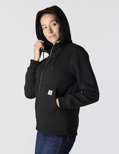 Details: Description Chilly days call for the warmth and softness of this women's hooded Carhartt sweatshirt. A thick sherpa fleece lining adds a cozy feel to its midweight cotton build. The relaxed fit sits closer to the body than Carhartt's loose fit but still offers room t